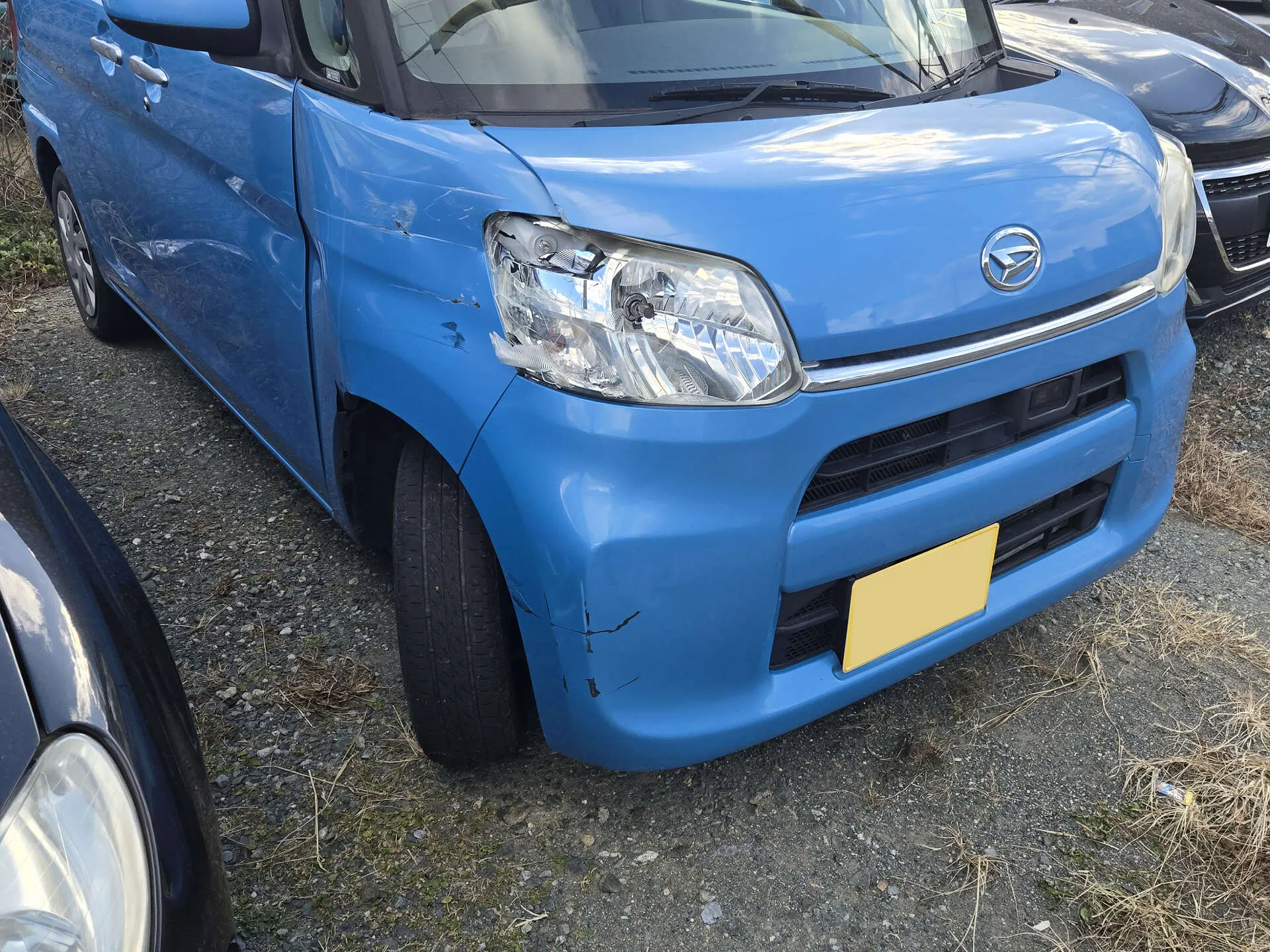 豊橋市のお客様より、ダイハツ タントのフロントバンパー・フロントフェンダーなどのキズ・へこみ修理のご依頼をいただきました。