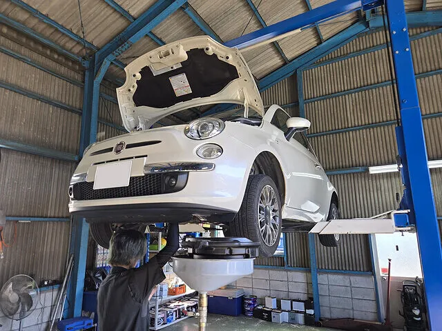 豊橋市 エンジンチェックランプ点灯修理 フィアット 500 エンジンオイル交換・ブレーキスイッチ交換│車修理